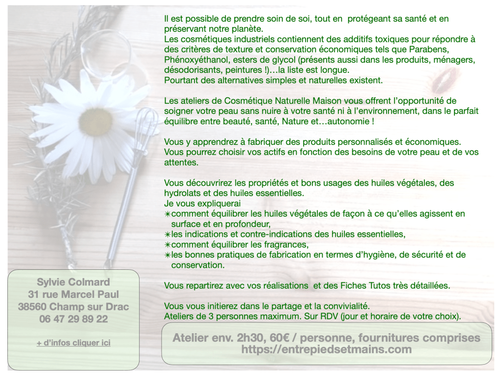 ATELIERS COSMÉTIQUES – PROGRAMME DÉTAILLÉ –